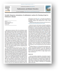 [1] FM Jia, etc. LM Li*. Variable frequency stimulation of subthalamic nucleus for freezing of gait in Parkinson’s disease. Parkinsonism and related disorders. http://dx.doi.org/10.1016/j.parkreldis.2015.10.002