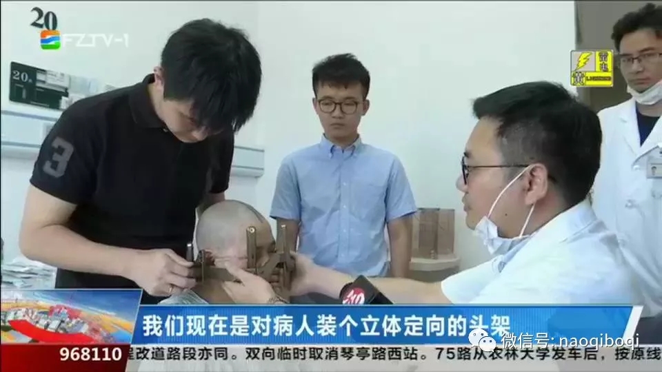 脑深部电刺激手术,通俗说就是给患者大脑特定的神经核团里植入一个电极,打开电极开关就能有效控制肌张力障碍的运动功能症状,提高患者日常生活质量。 由于核团位于大脑深部,长轴仅六到七毫米,为了能够找到这个安装电极的准确位置,医生们需利用立体定向头架配合头部CT影像找到核团位置,再通过电脑计划系统精确计算出其所在的角度。 福建医科大学附属协和医院神经外科主治医师谢海树:因为病人要达到治疗效果的那个核团本身就很小,差不多就小黄豆那么大。而且我们不止要找到这个点,电极还要穿过米粒大小的这个点的长轴,因为它有短轴和长轴,最理想的就是穿过那个长轴 所以不止找到这个点,角度怎么样,怎么进入都很重要,这个计划系统可以帮助我们来找出理想的位置。 经过多位医生和专家的共同探讨和严密计算,一个多小时后,终于确定了手术位置坐标。